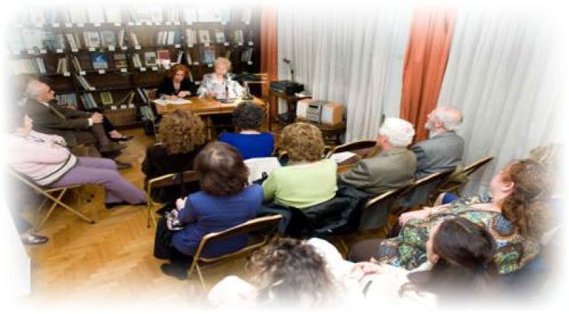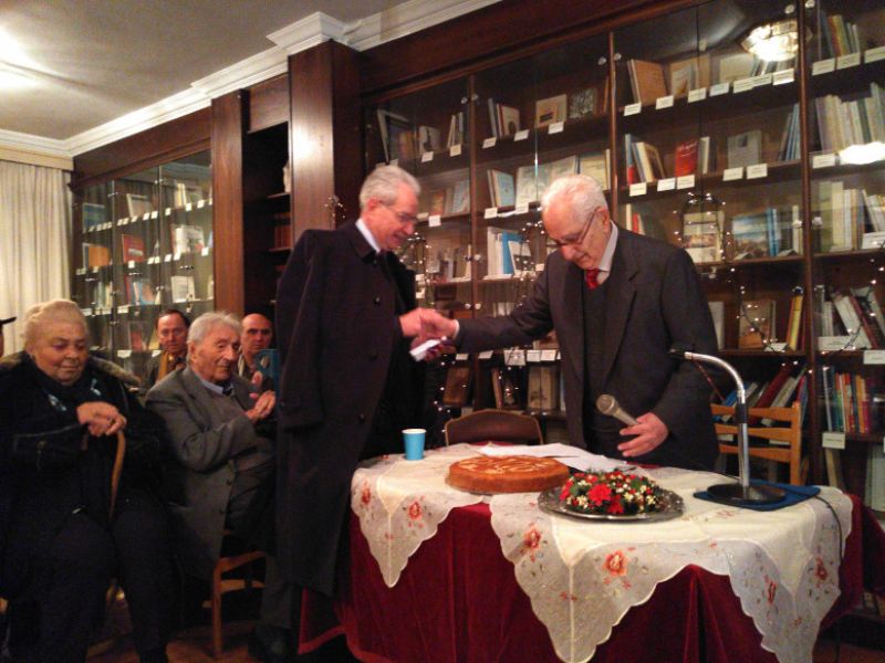 Μέλη της Εταιρίας δωρίζουν αντίτυπα έργων τους για να εκτίθενται στη μεγάλη εντοιχισμένη βιβλιοθήκη του εντευκτηρίου και της αίθουσας διαλέξεων.